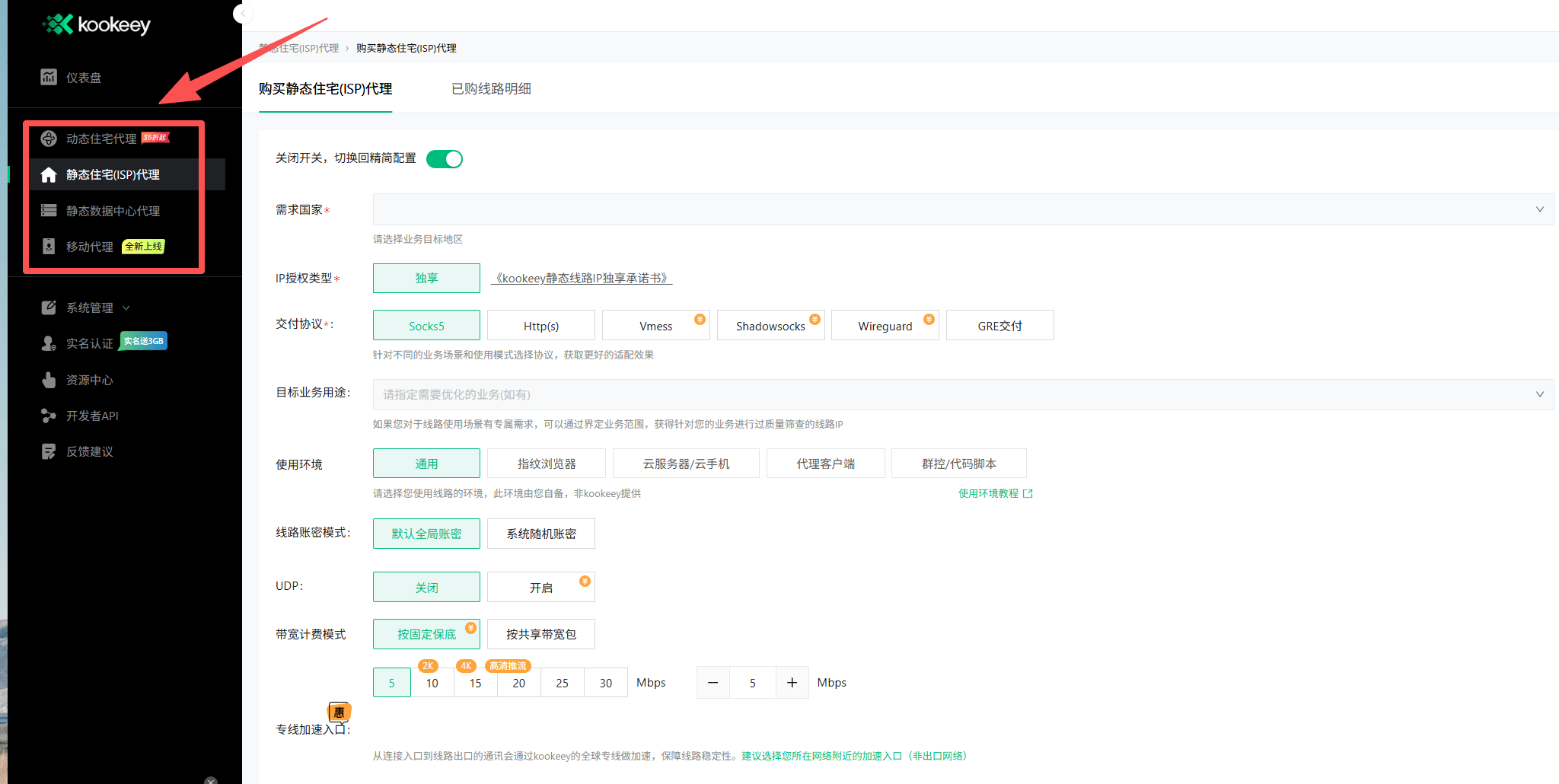 选择你需要购买的代理类型